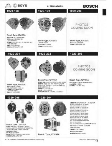 Bosch Type, 12V /90A   Bosch  Type, 12V/90A   Bosch  Type, 12V/90A   Bosch Type, 12V/95A   Bosch  Type, 12V/95A