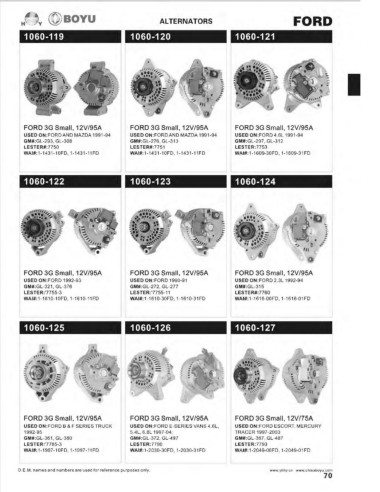 USED ON:FORD TRUCKS 1990-91   USED ON:FORD 3.0L 1992-94   USED ON: FORD 1990   FORD 3G Small, 12V/95A   FORD 3G Small, 12V/95A   FORD 3G Small, 12V/75A